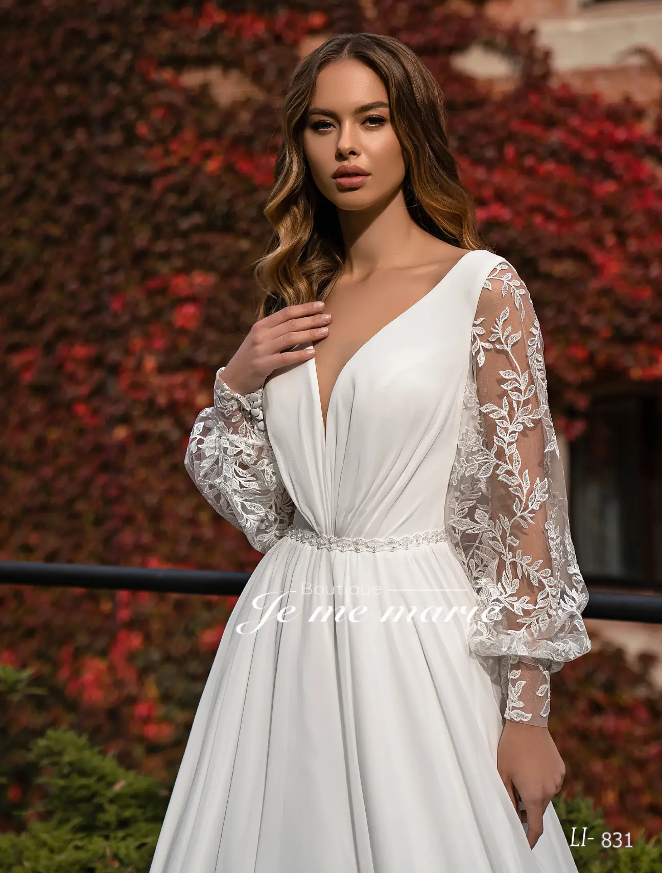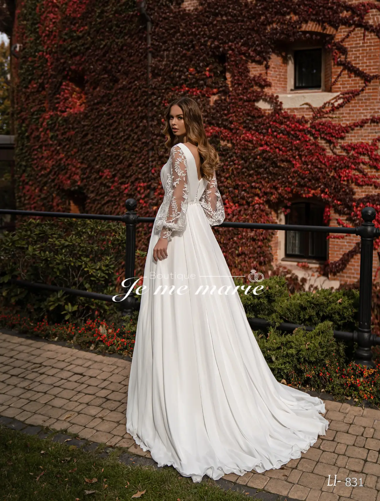 Une magnifique robe de mariée bohème LI-831 qui respire l’élégance et la sophistication. Les détails de dentelle sur le corsage et les manches ajoutent une touche de romantisme à cette superbe robe. La jupe fluide en mousseline de soie crée une silhouette gracieuse, parfaite pour toutes les mariées. Le décolleté en cœur et le dos ouvert ajoutent une touche de modernité à ce style classique.